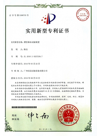• 淋雨試驗(yàn)裝置-實(shí)用新型專利證書【岳信公司】
